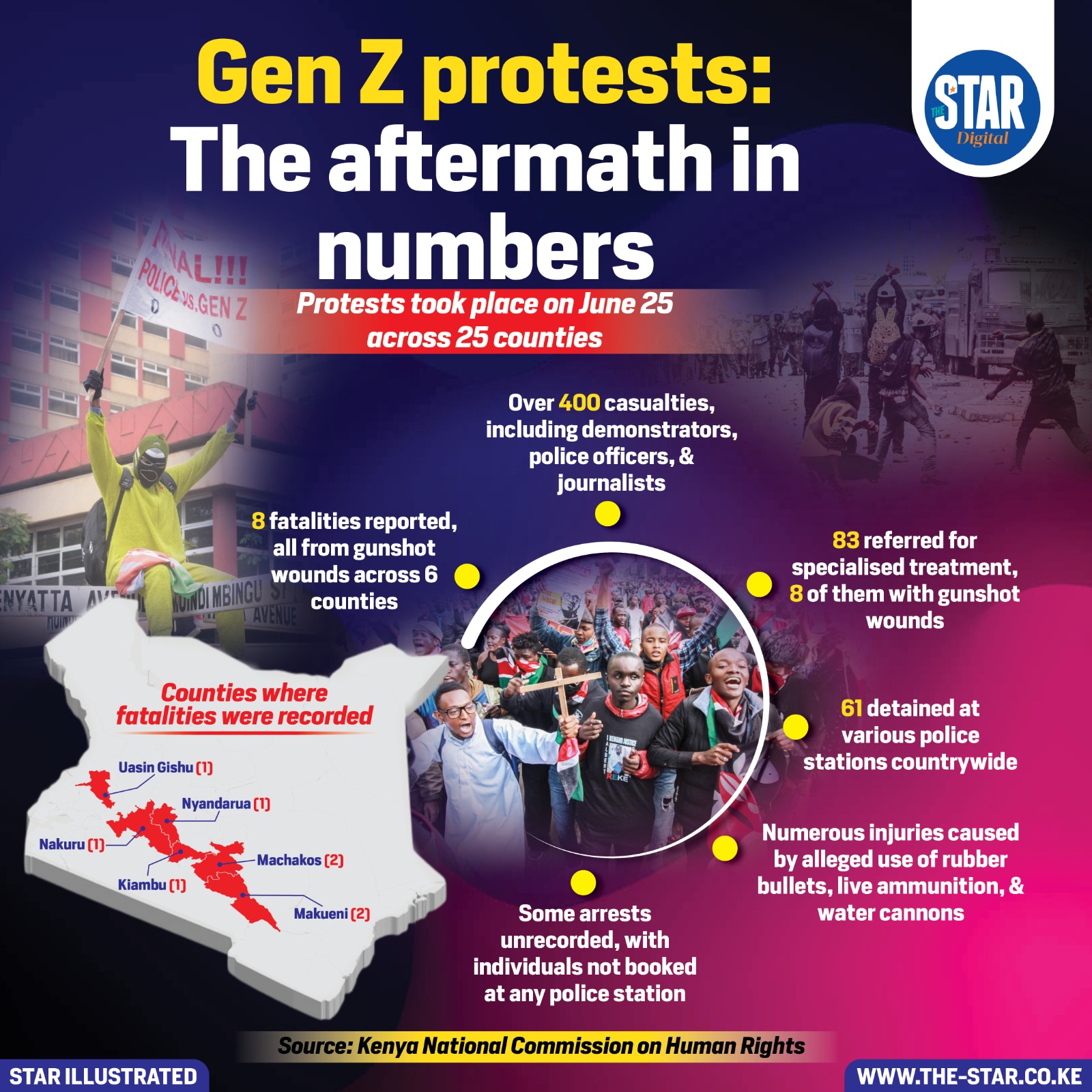 The June 25 Gen Z protests spread across 25 counties, leaving a trail of casualties and concern.