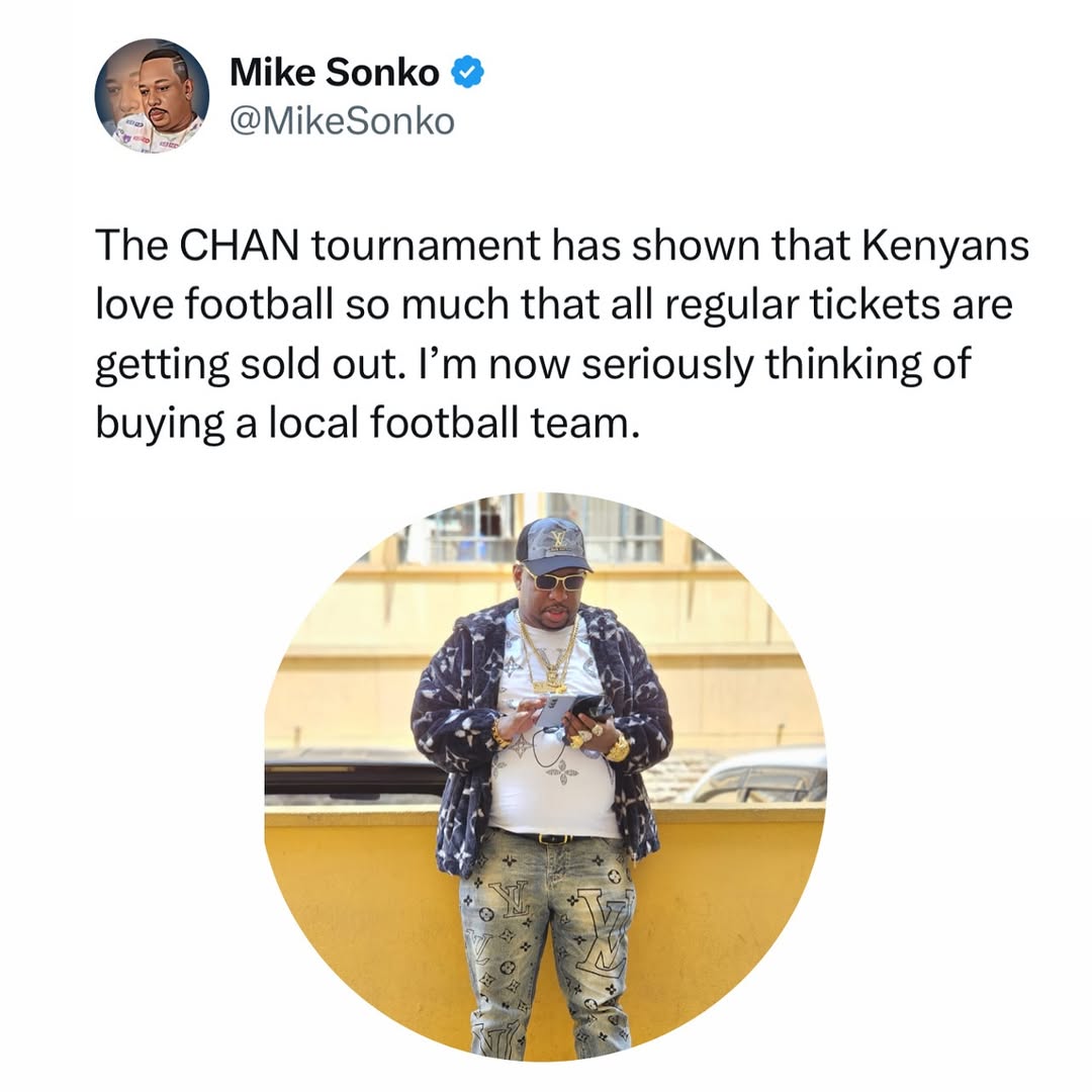 Former Nairobi Governor Mike Sonko has sparked speculation after hinting on social media that he might buy a local football team.
