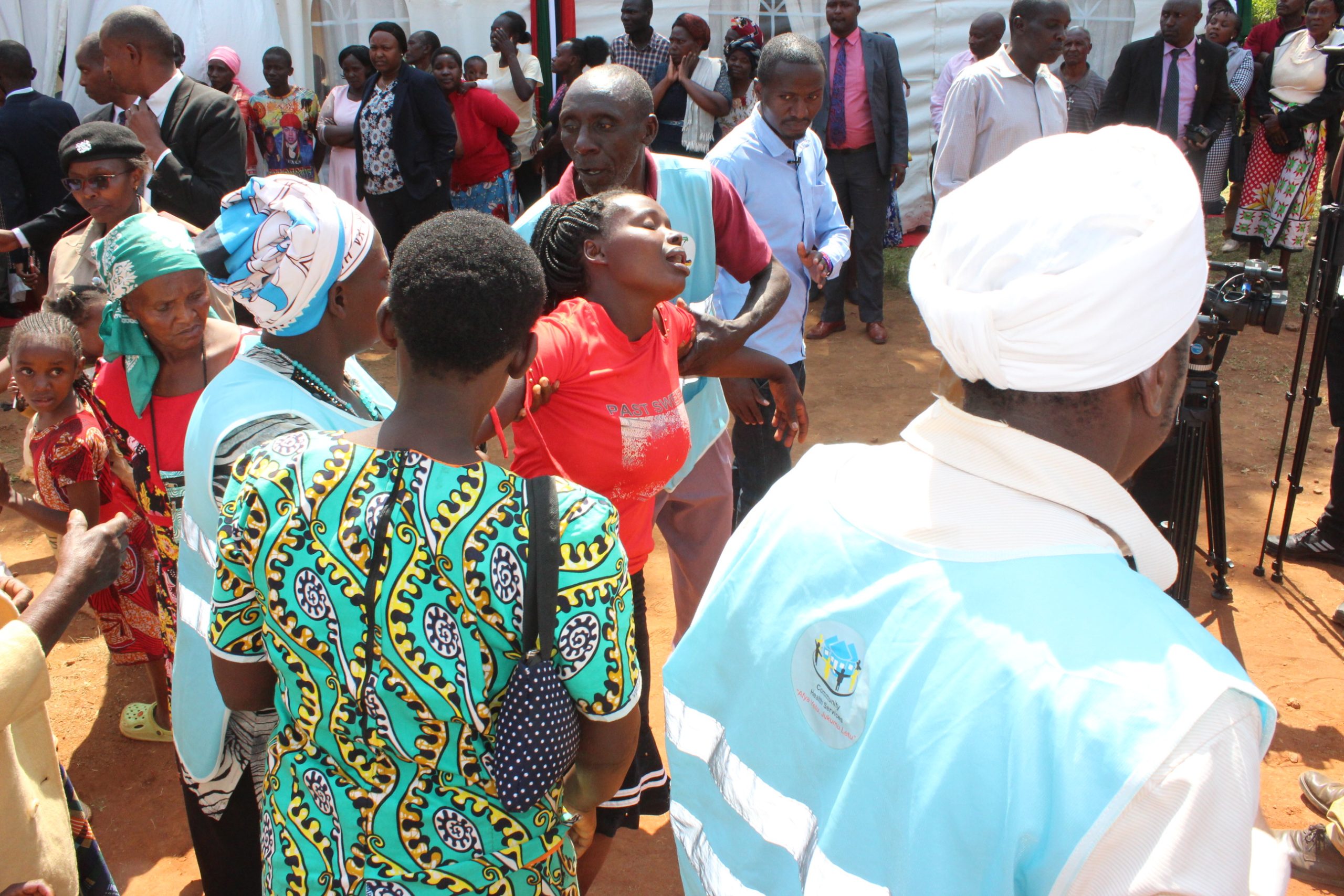At Kahiga Catholic church, residents could be seen huddling under trees for shade, relying on the loudspeakers from the church to follow proceedings.