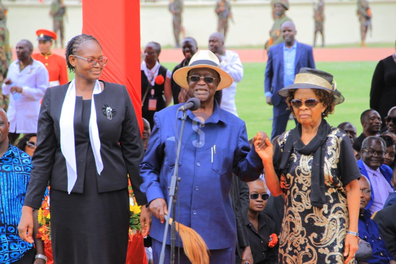 Then, turning to his second wife, he added amid cheers, “She is Judith Oburu — she works with NSSF and is a qualified accountant. I thought that at my age, I didn’t want Ann to scratch me or massage me, so I brought her a helper.”