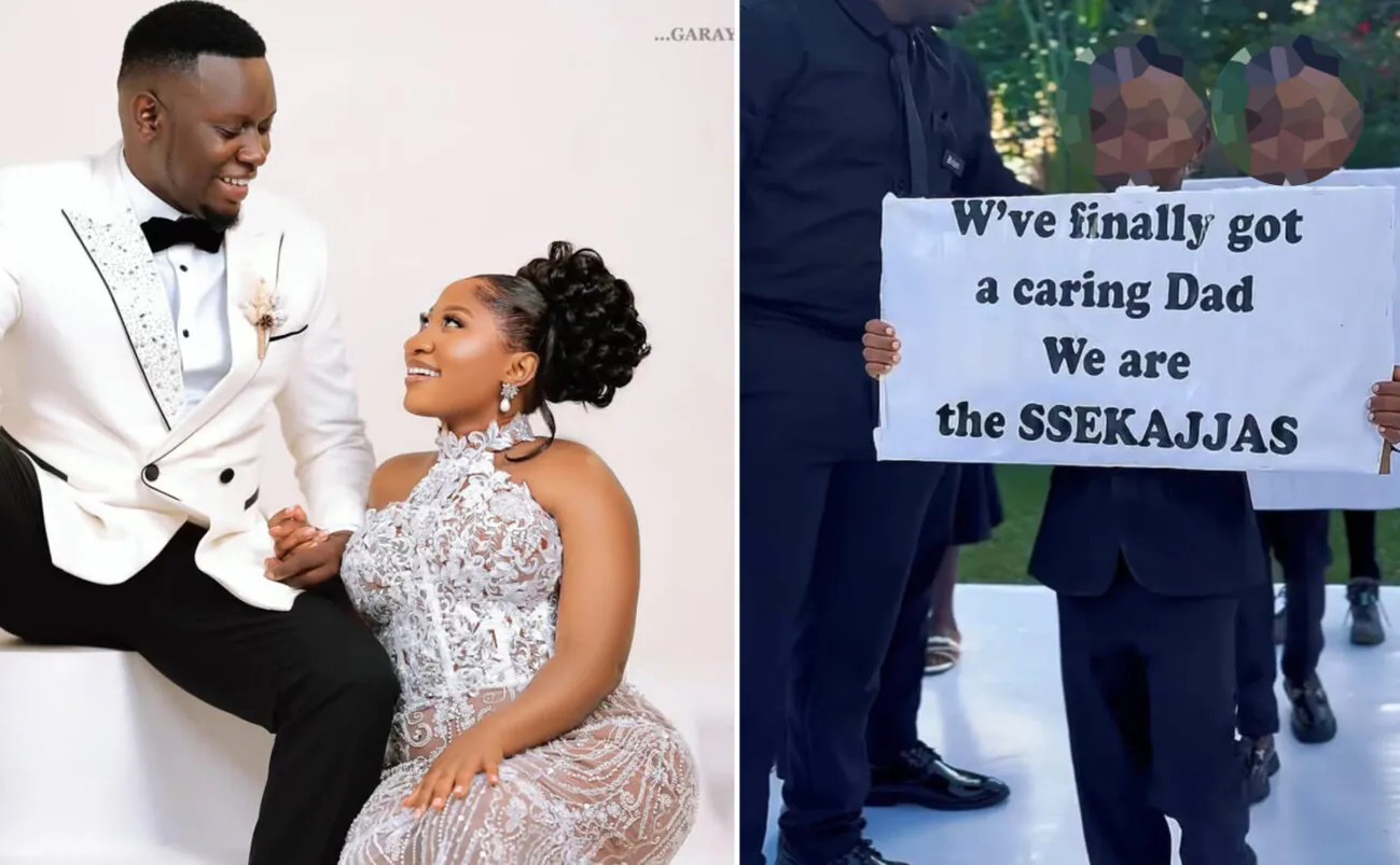 During the wedding, the children were seen holding placards thanking Ssekajja for marrying their mother and praising him as the caring father they had lacked. The messages also suggested that their mother had now taken on the ‘Ssekajja’ name, a detail that further fuelled online reactions and criticism.