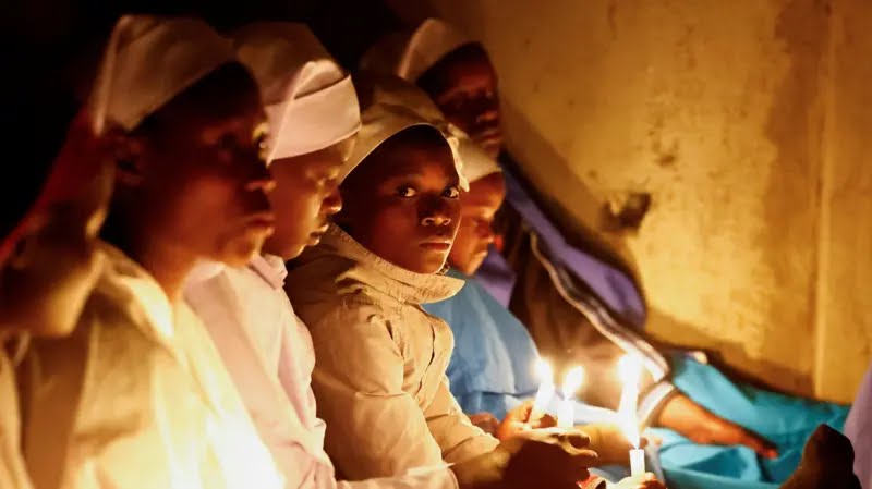 Women hold candles as they attend a Christmas Eve mass in Nairobi, Kenya../SCREENGRAB