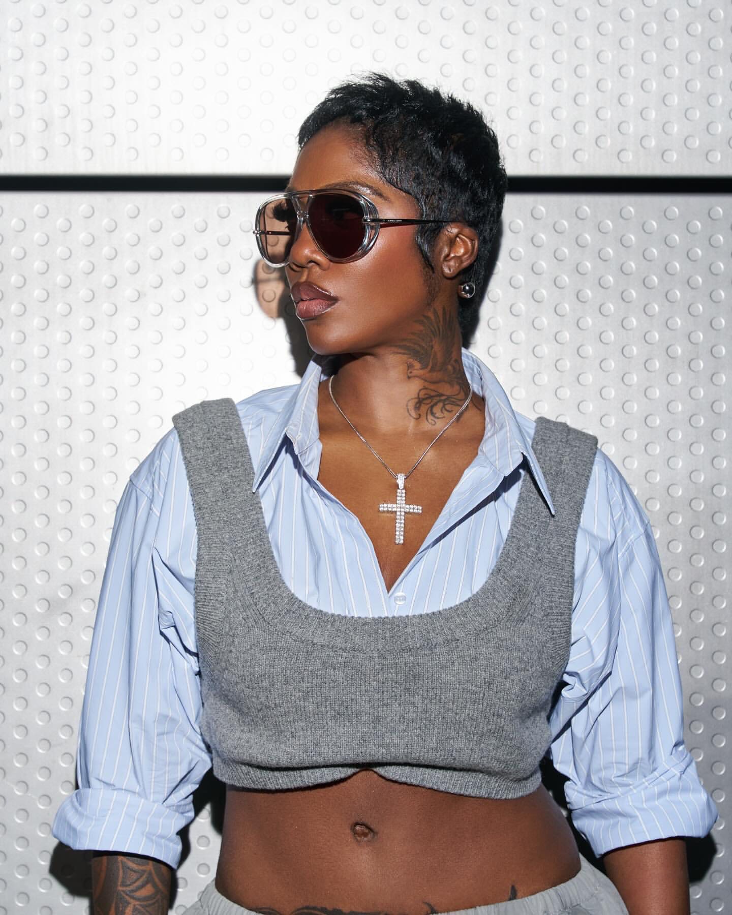 The viral clip captures the singer in a raw, vulnerable state. Tiwa Savage took to the stage in a minimalist yet chic outfit: a sleeveless white cropped top paired with black shorts and dark tights.