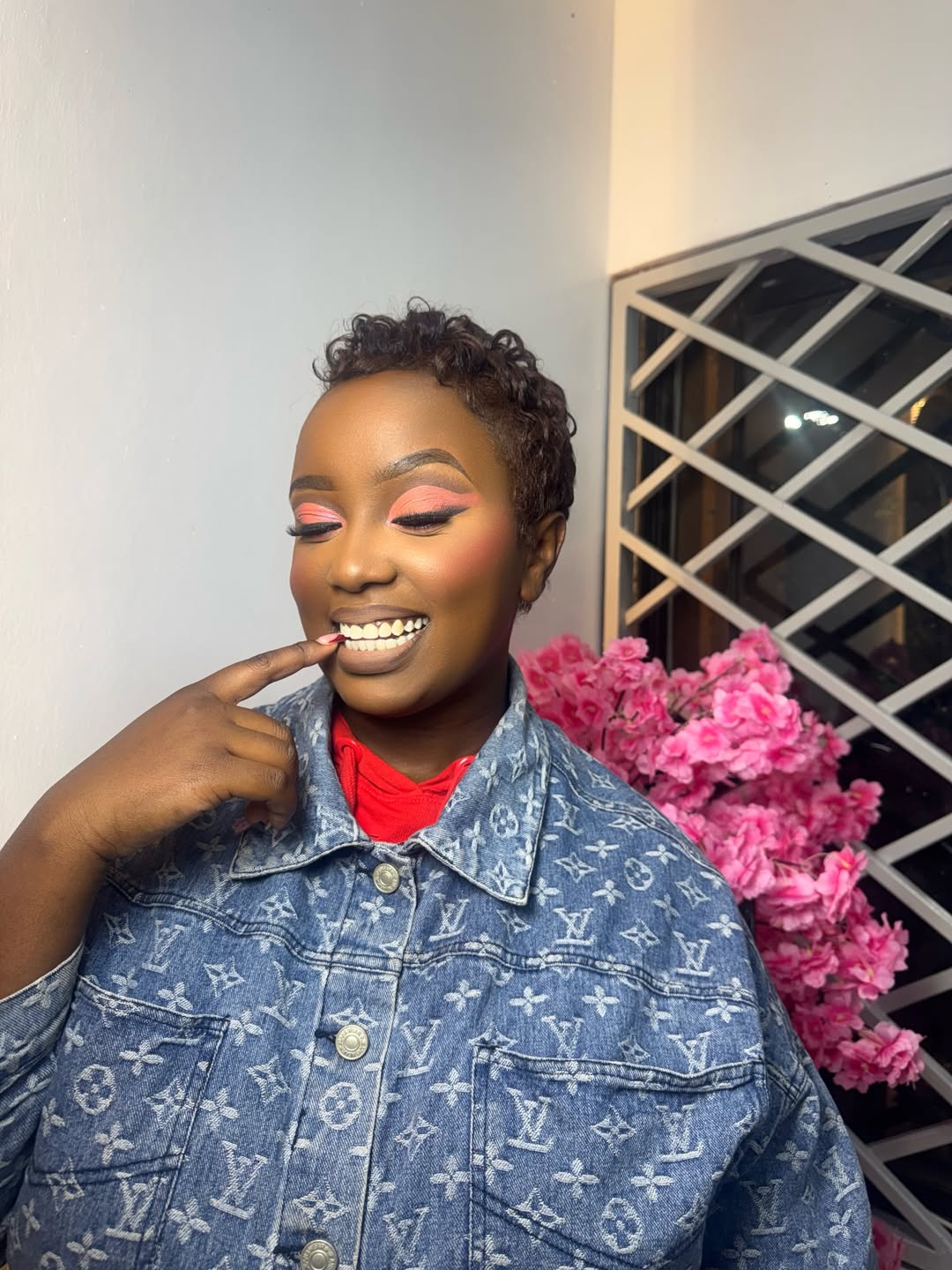 In her reveal photo, she appeared radiant, sporting a denim Louis Vuitton-patterned jacket over a red hoodie. Her makeup was expertly done with pink-toned eyeshadow and a neutral lip, accentuating her new features.