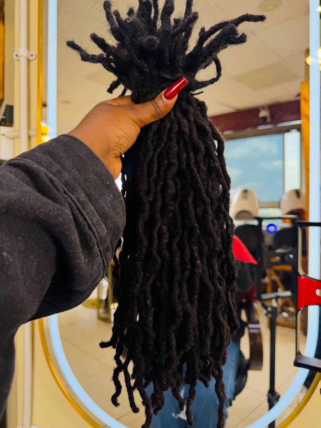 The process was captured vividly in a series of images. In one poignant mirror selfie, Keranta holds a thick bundle of her severed locs in front of her face, showcasing the sheer volume of hair she has carried for five years.