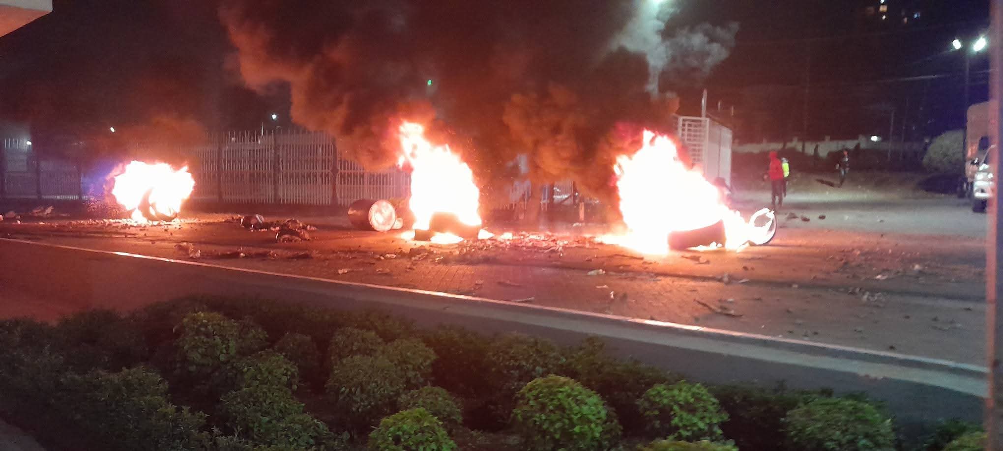 The road has also been blocked, disrupting movement in the area. By morning, debris and demolished structures were still visible, with affected business owners counting losses.