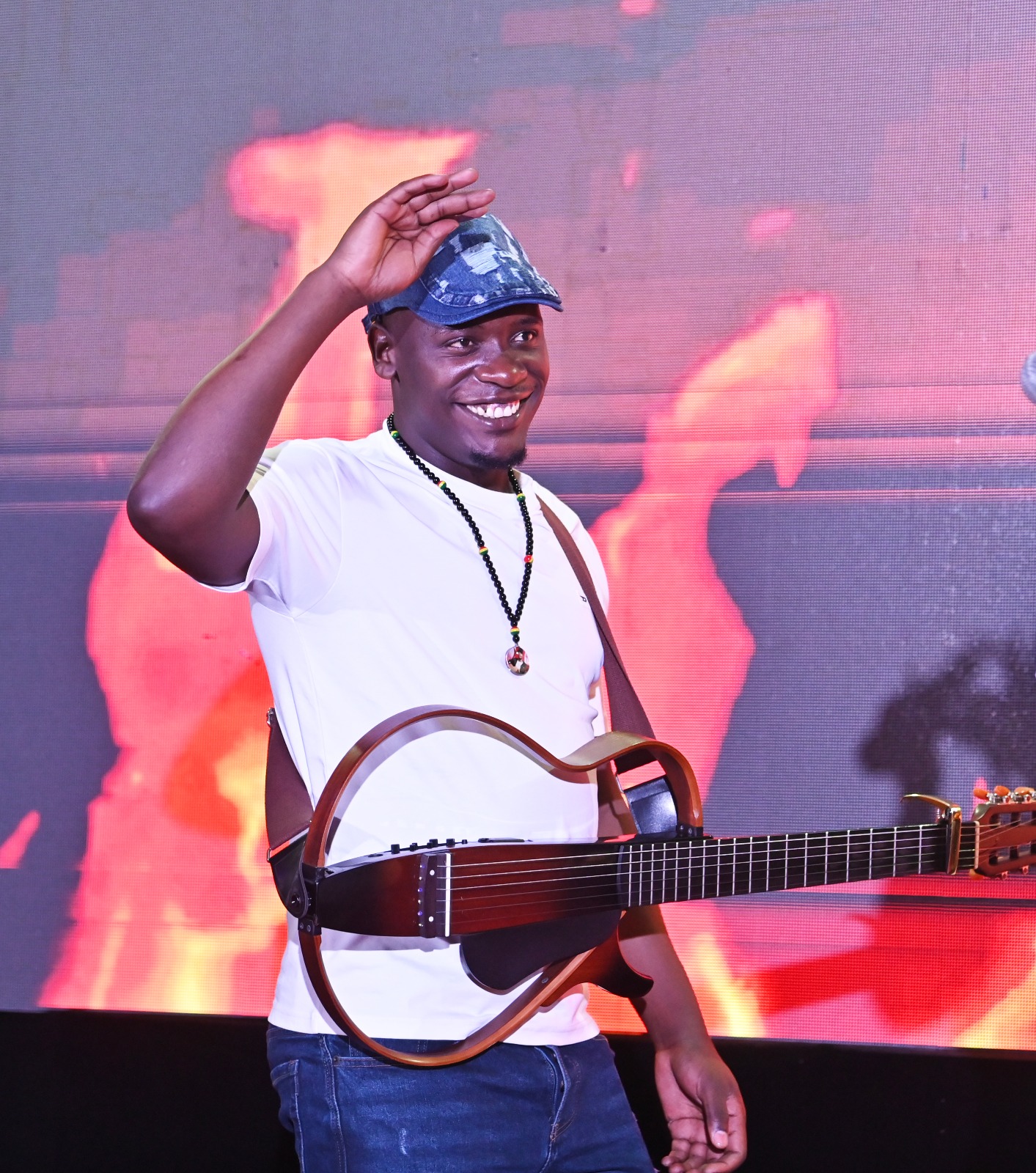 King of Mugithi, Waithaka wa Jane, takes part in an evening engagement at Kigali’s Paramount Hotel, Rwanda, where he met Kenyans living in Rwanda during the launch of Choma Zone. /PHOTO: John Muchucha/Poll