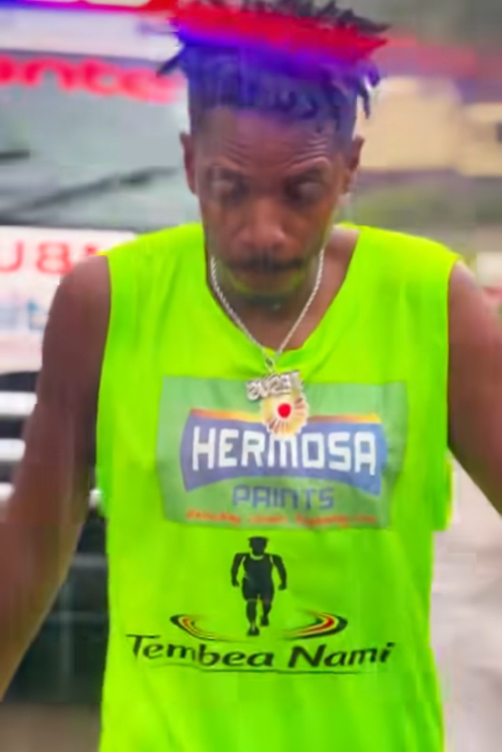 The jersey features a “Tembea Nami” (Walk with Me. At several points in the video, he stops to wipe the water from his eyes. His expression flickers between exhaustion and a defiant smile.